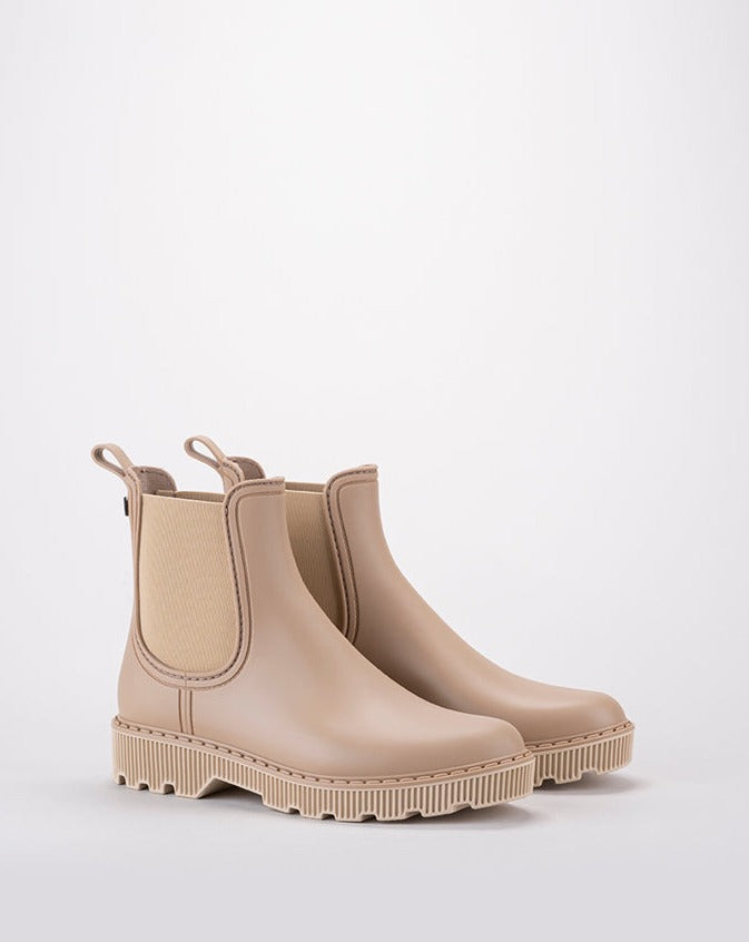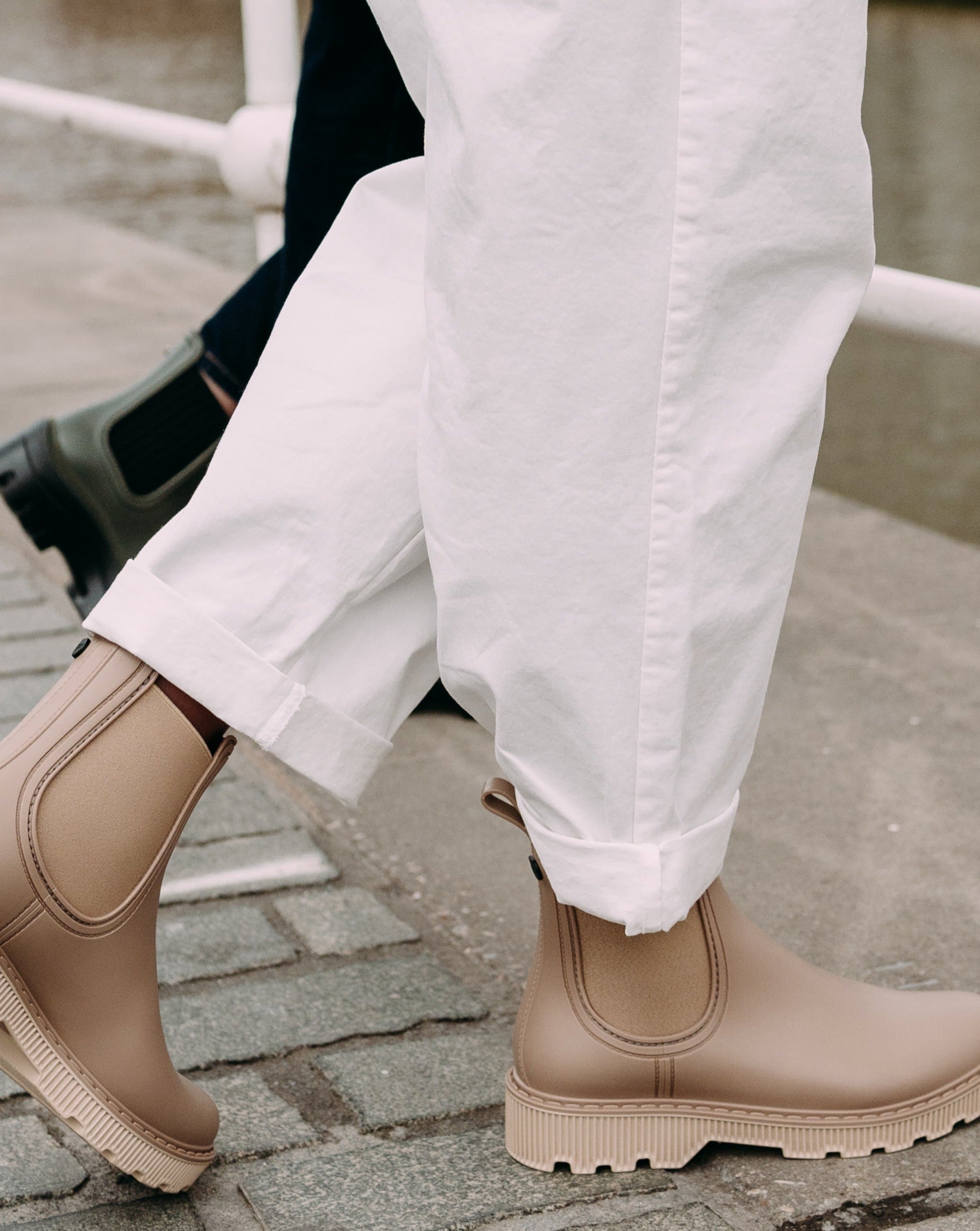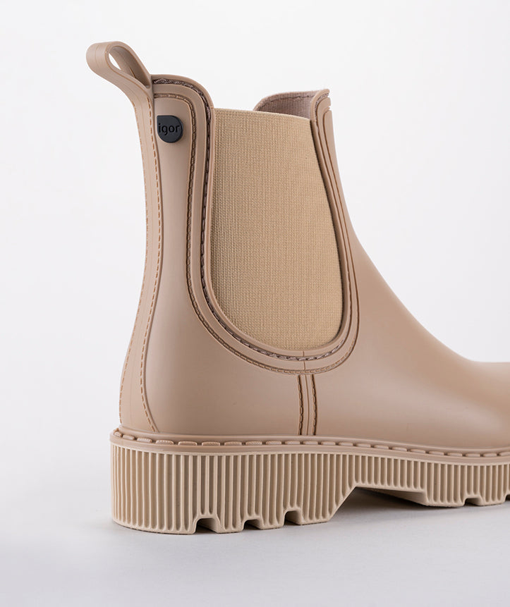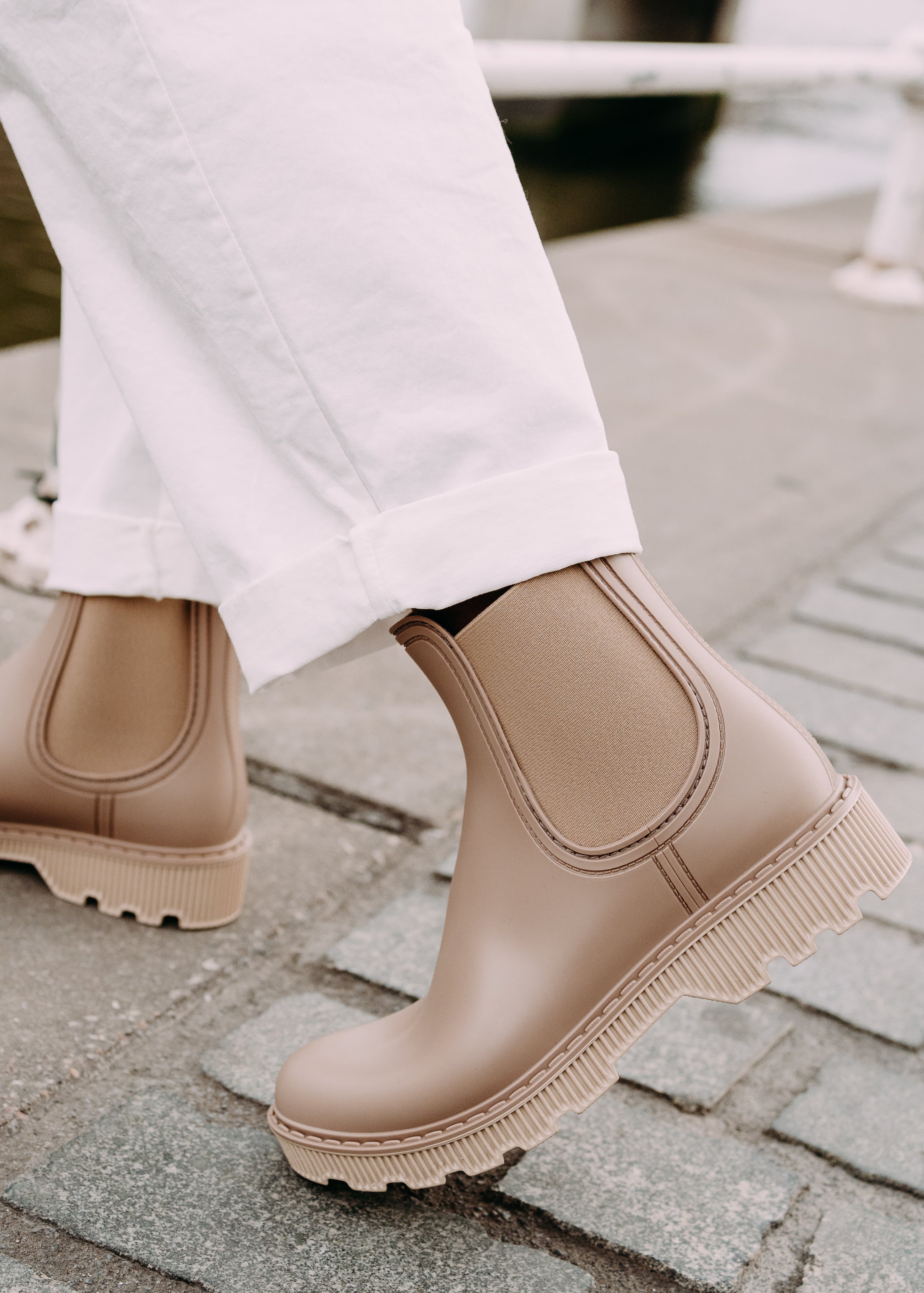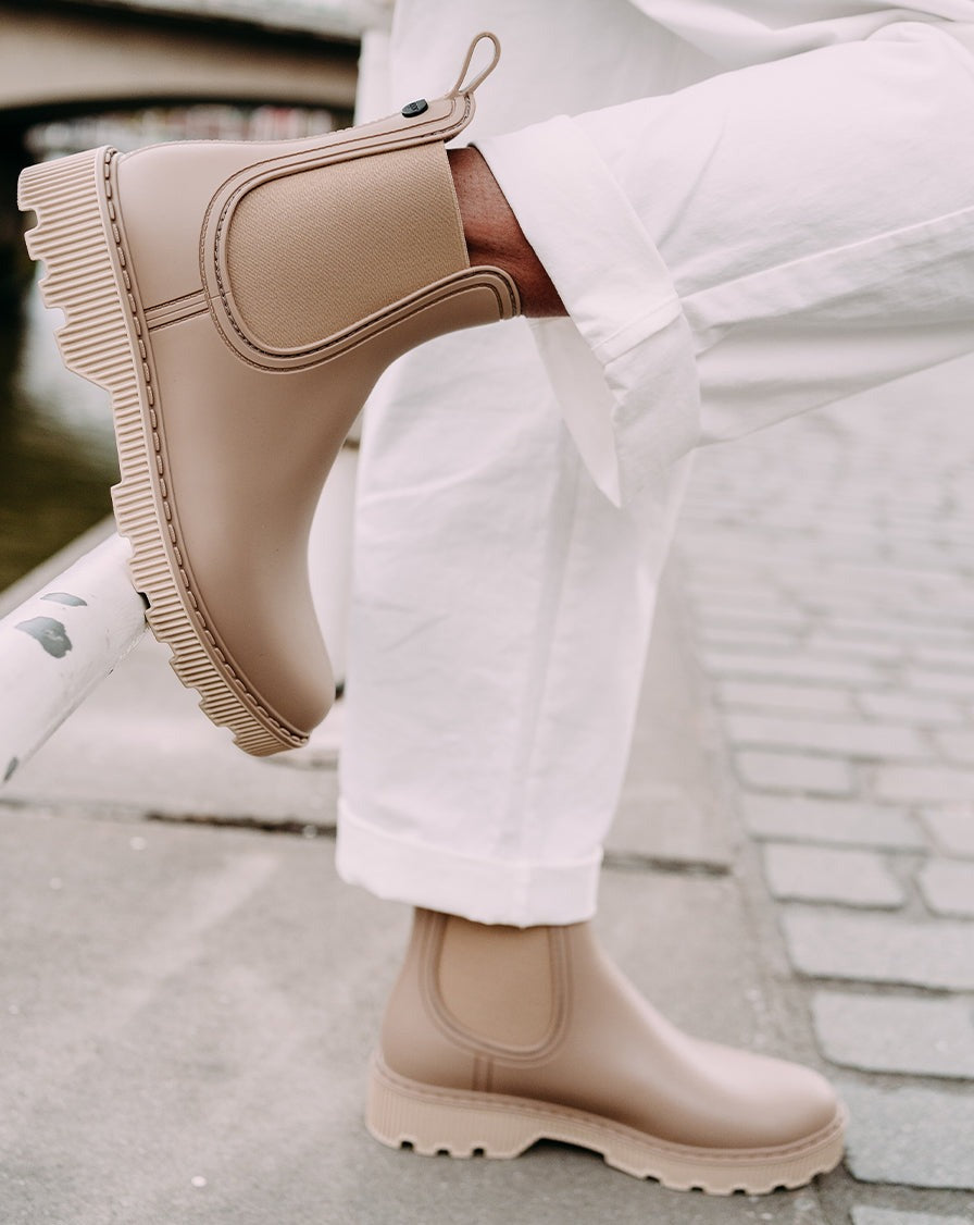 Botín de agua para mujeres que buscan practicidad sin renunciar al estilo. Este botín con acabado mate combina ligereza, flexibilidad y un diseño moderno tipo chelsea con elásticos laterales, que facilita el calce y aporta un toque sofisticado.