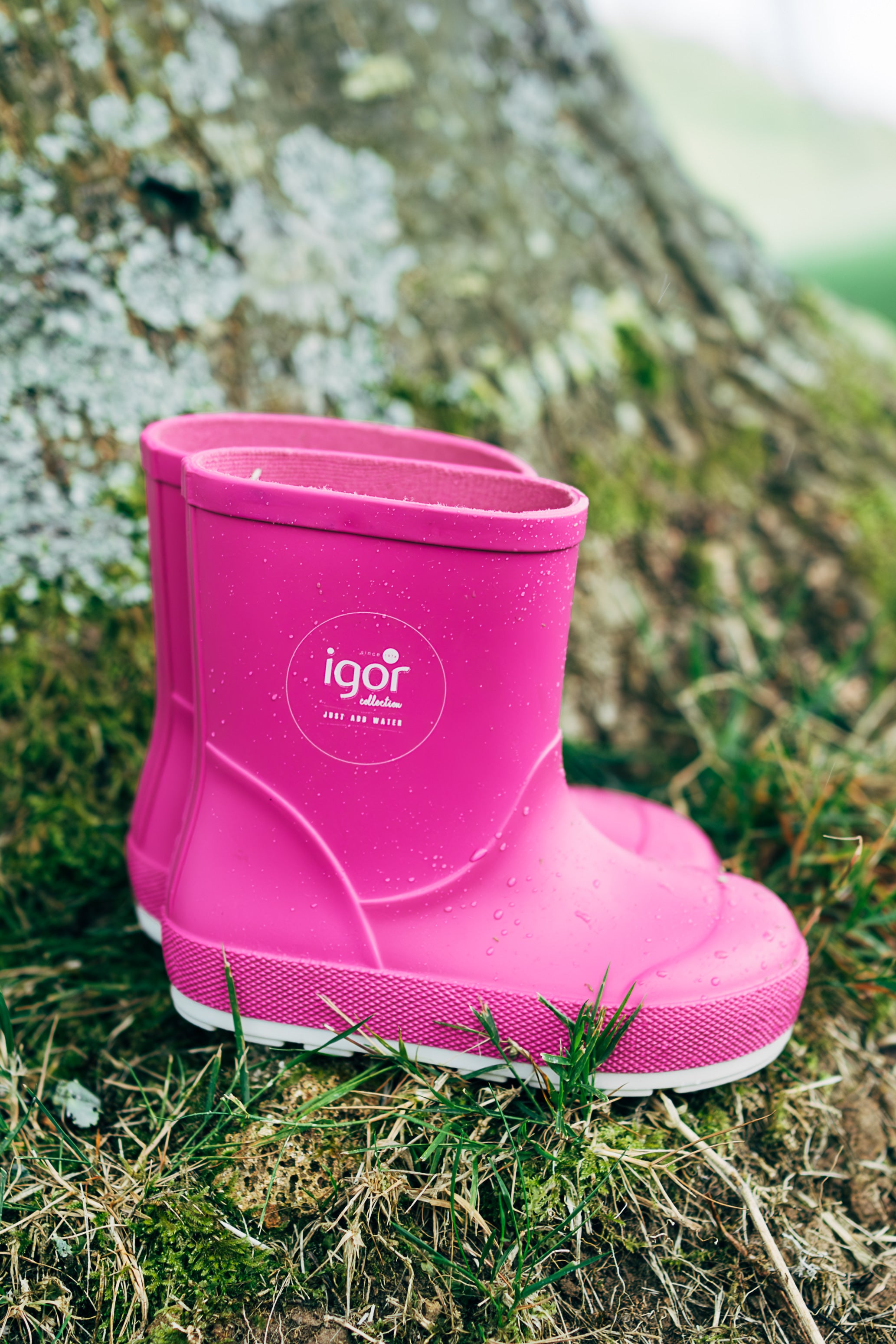 Botas impermeables IGOR para niños en colores vibrantes, perfectas para días de lluvia o juegos al aire libre. Fabricadas en material liviano y resistente, con suela antideslizante para mayor seguridad y confort.