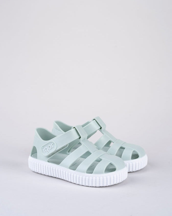 Sandalias deportivas para niño IGOR estilo sport con acabado mate, perfectas para la playa, la piscina o para disfrutar del día a día con total comodidad. Su diseño en PVC inyectado en una sola pieza ofrece resistencia y flexibilidad, mientras que el cierre en velcro al tobillo permite un ajuste fácil y seguro.