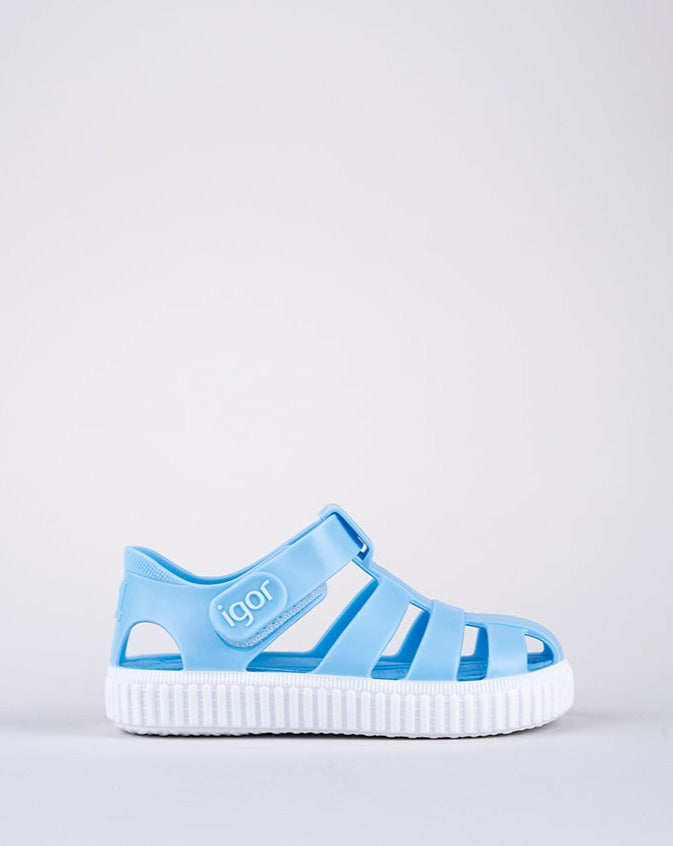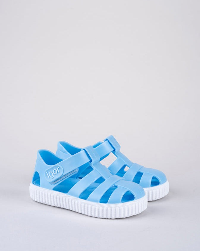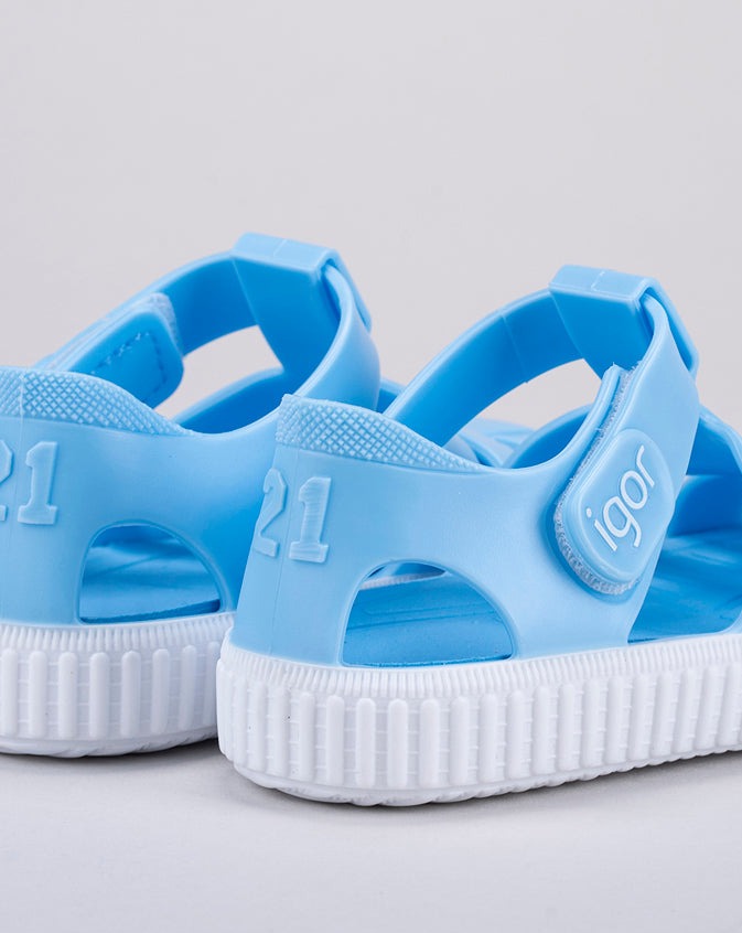 Sandalias deportivas para niño IGOR estilo sport con acabado mate, perfectas para la playa, la piscina o para disfrutar del día a día con total comodidad. Su diseño en PVC inyectado en una sola pieza ofrece resistencia y flexibilidad, mientras que el cierre en velcro al tobillo permite un ajuste fácil y seguro.