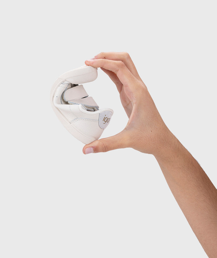 Tenis de piel IGOR; son deportivos en cuero para niños, su diseño barefoot de suela plana, promueve un desarrollo natural del pie, y su estructura es flexible, blandita y ligera. El diseño con tiras ajustables de cierre de velcro, facilita un uso práctico y rápido.