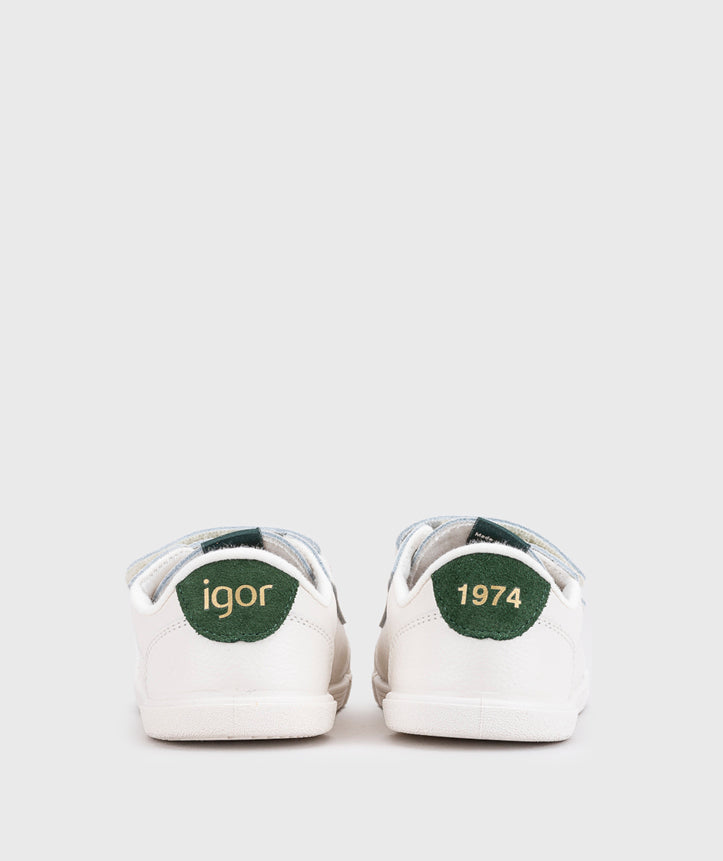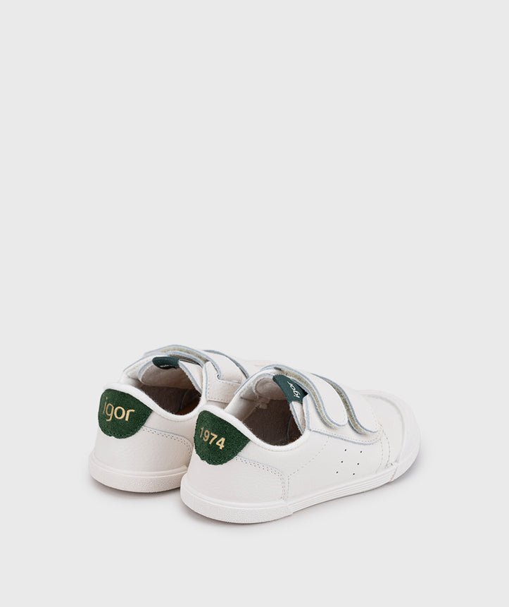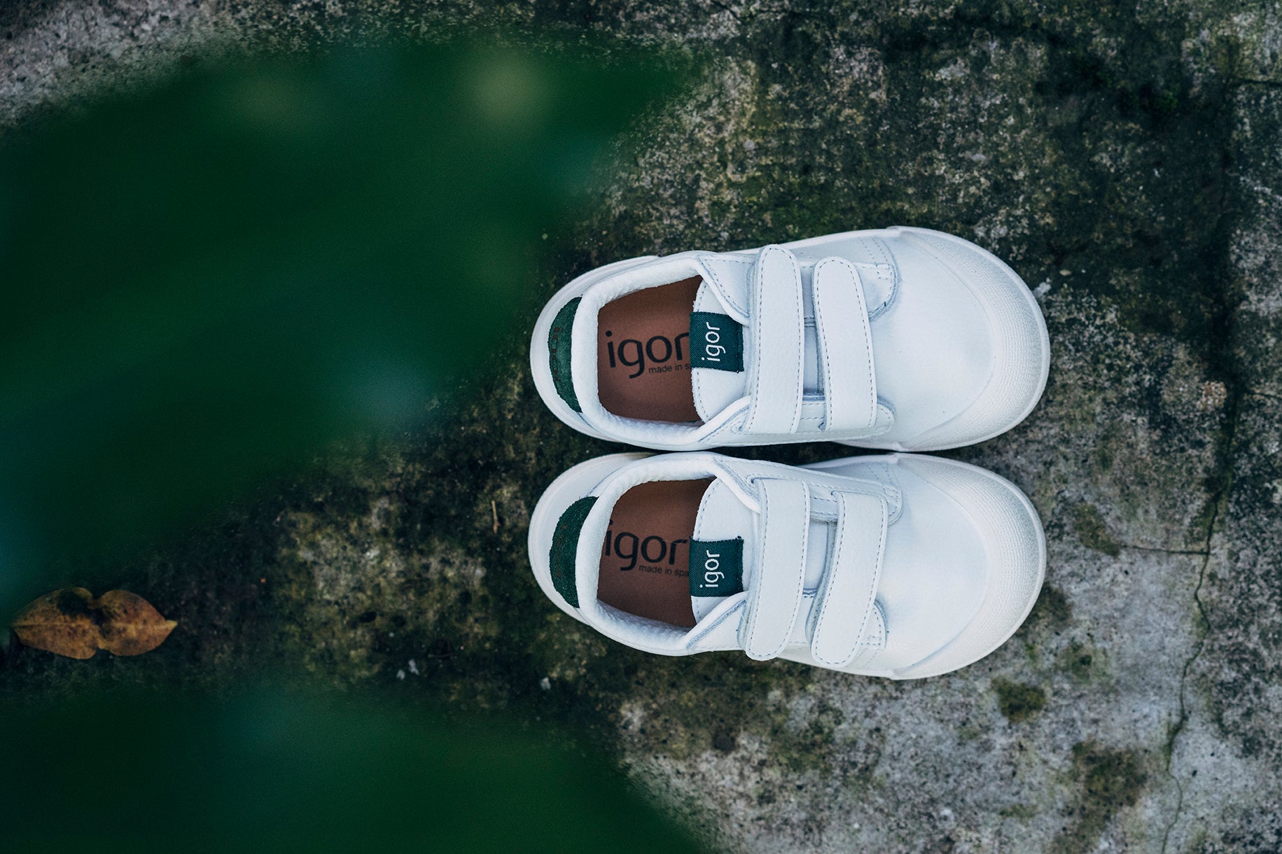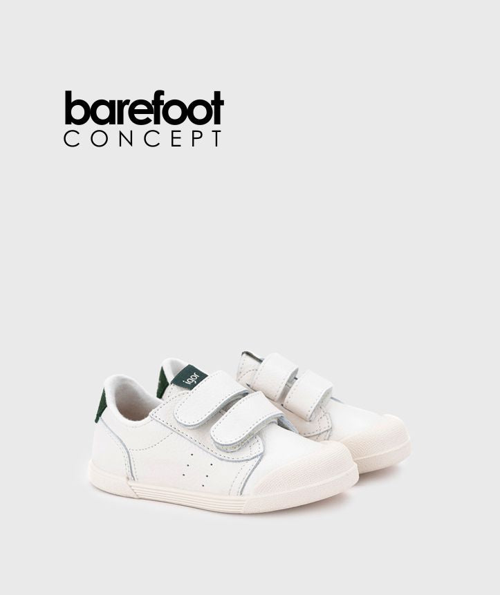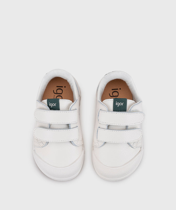Tenis de piel IGOR; son deportivos en cuero para niños, su diseño barefoot de suela plana, promueve un desarrollo natural del pie, y su estructura es flexible, blandita y ligera. El diseño con tiras ajustables de cierre de velcro, facilita un uso práctico y rápido.
