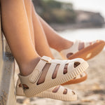 La suela ligera y la plantilla de confort extraíble en EVA proporcionan una pisada suave, ideal para pies activos en movimiento constante. Muy cómodas, blanditas y fáciles de limpiar.