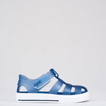 Sandalias STAR para niños de IGOR, material translucido mate de colores vibrantes con suela blanca, perfectas para la playa, la piscina o para disfrutar del día a día con total comodidad. Su diseño en PVC inyectado en una sola pieza ofrece resistencia y flexibilidad, mientras que el cierre en velcro al tobillo permite un ajuste fácil y seguro.
