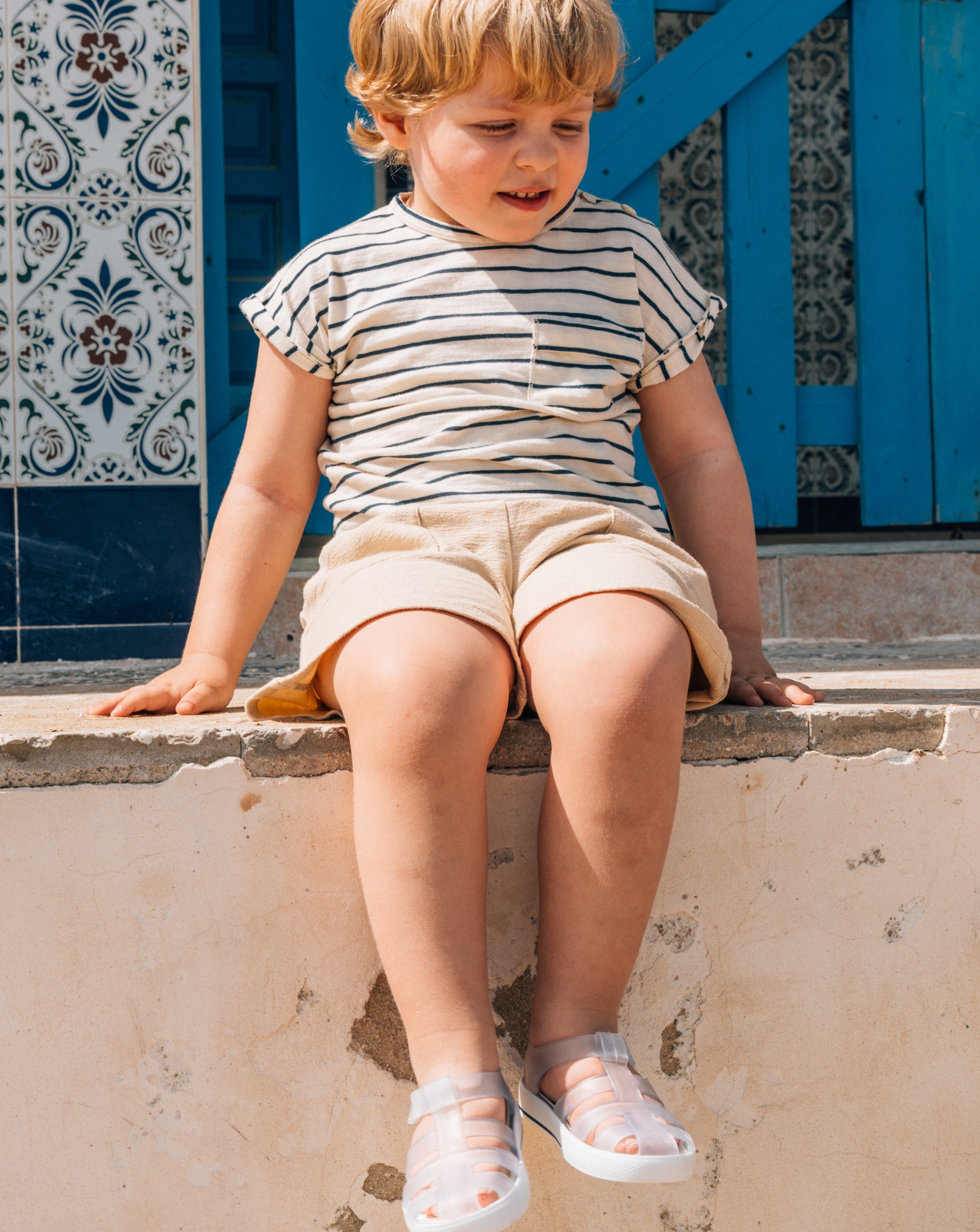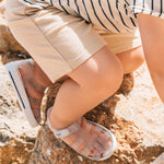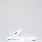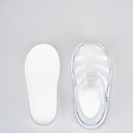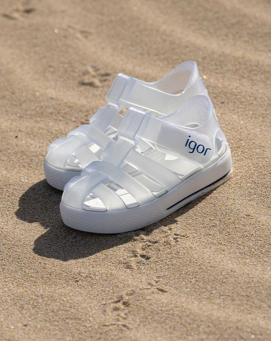 Sandalias STAR para niños de IGOR, material translucido mate de colores vibrantes con suela blanca, perfectas para la playa, la piscina o para disfrutar del día a día con total comodidad. Su diseño en PVC inyectado en una sola pieza ofrece resistencia y flexibilidad, mientras que el cierre en velcro al tobillo permite un ajuste fácil y seguro.